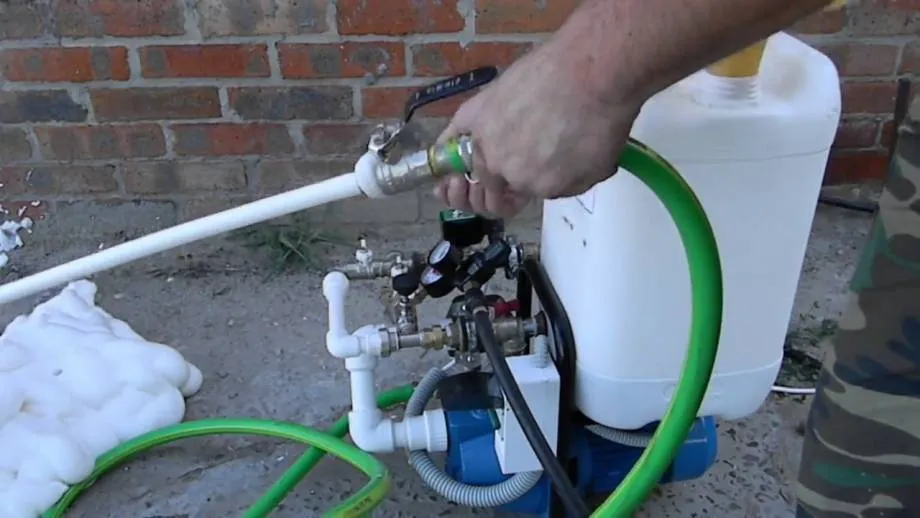 Последним делом просто испытайте ваш самодельный пеногенератор из садового опрыскивателя.