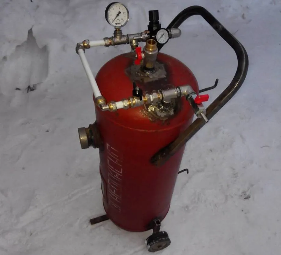 Ключевым элементом конструкции является сама ёмкость, а именно – баллон из-под использованного огнетушителя.