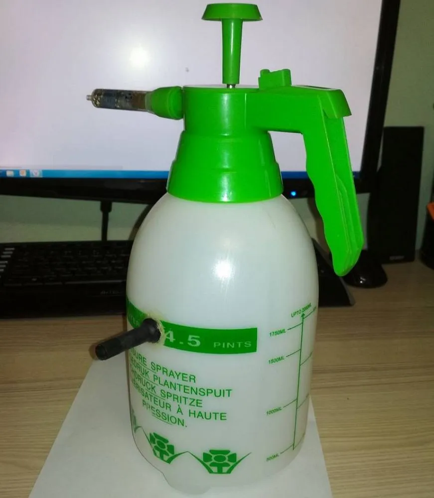 Основой данной конструкции будет обычный садовый опрыскиватель, который можно раздобыть в почти любом садовом магазине или заказать в интернете.