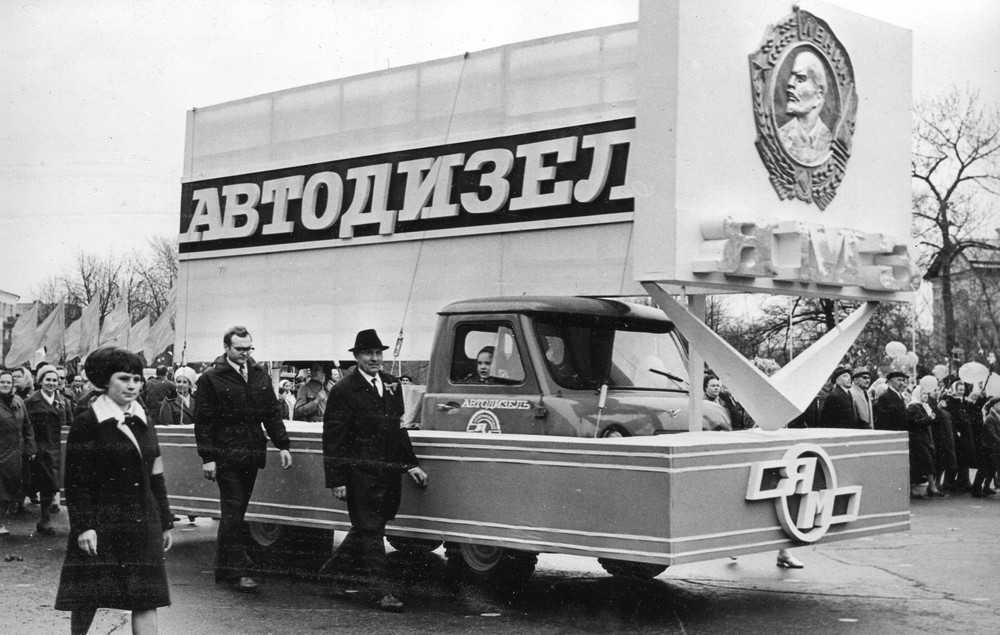 Колонна ЯМЗ на первомайской демонстрации. 1973 г.