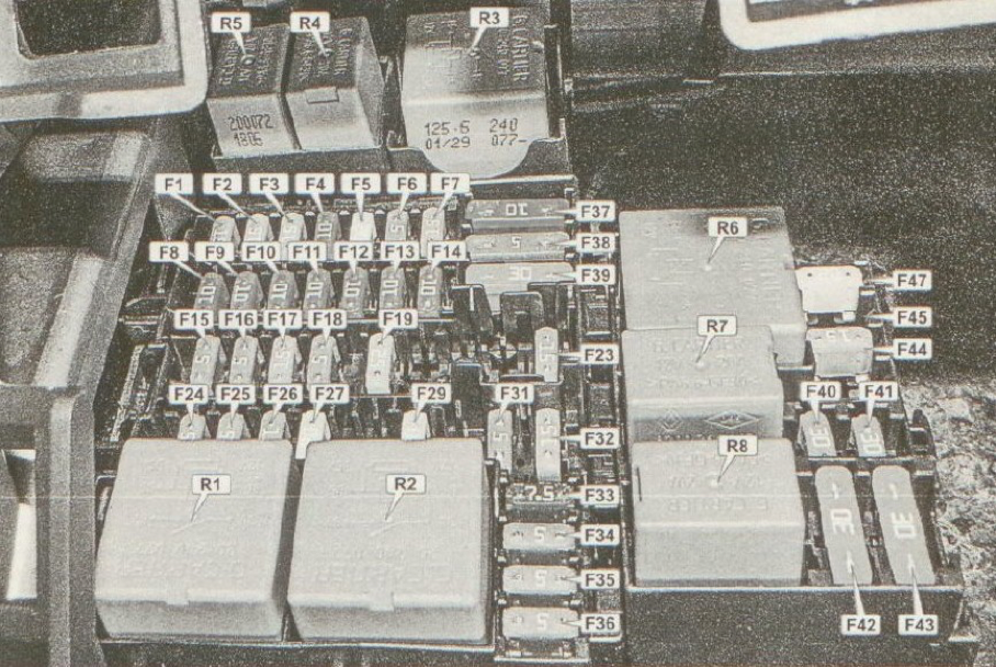 Схема блока предохранителей и реле в салоне Рено Каптур