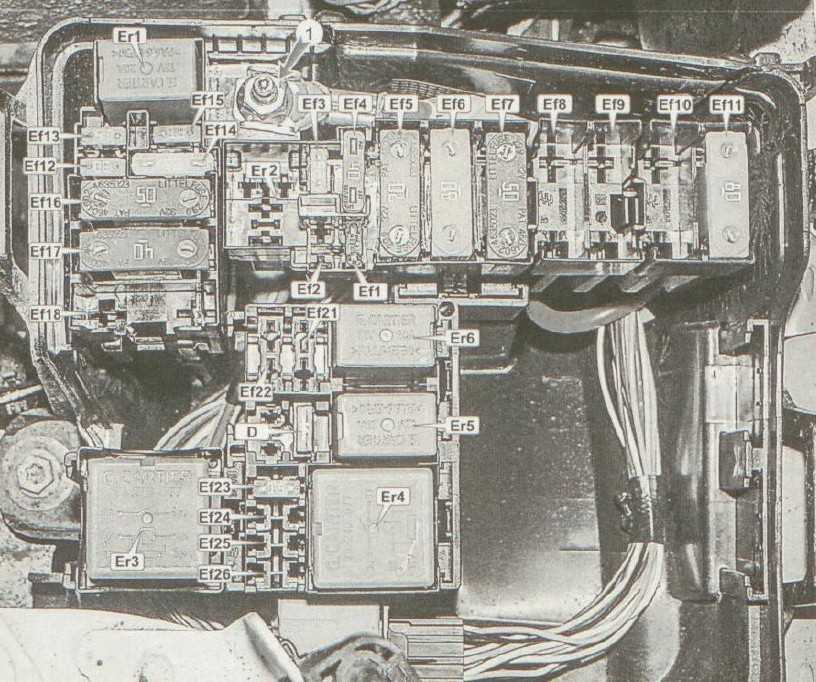 | Ef6 | 60A Выключатель (замок) зажигания, цепи предохранителей Р28. Р31, Р38, Р43, Р46, Р47 |