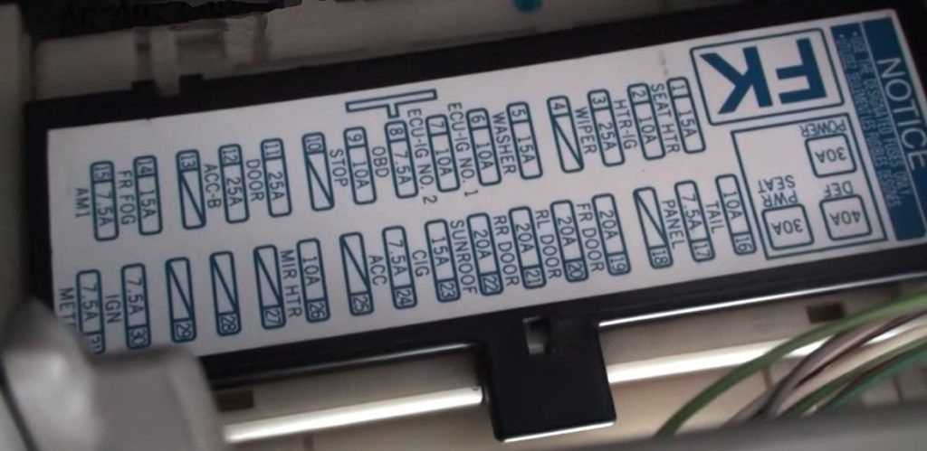 Схема блока предохранителей в салоне Тойота Королла Е150