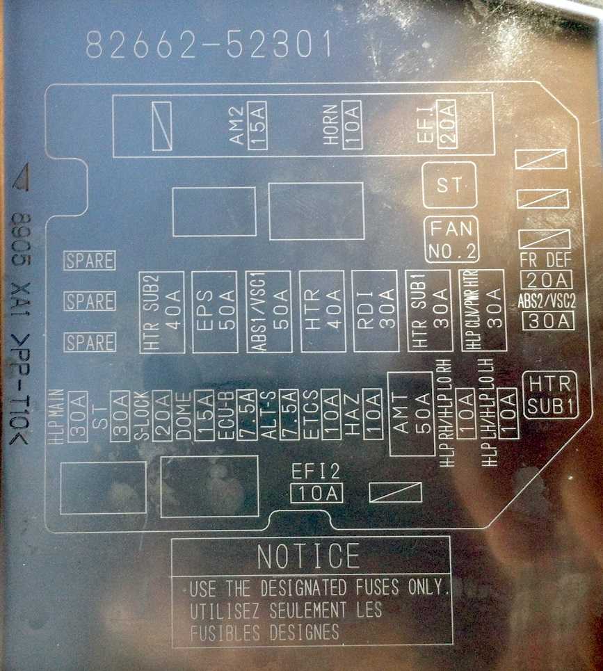 Предохранители и реле Toyota Corolla 120 (124 – 130) кузов Филдер