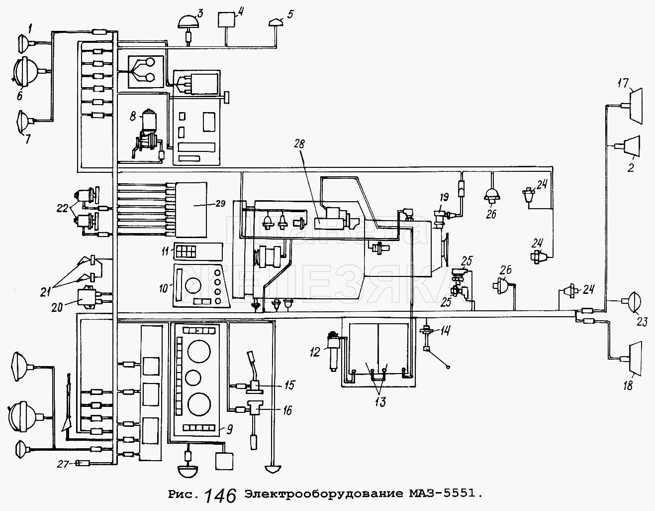 Схема электрооборудования авто МАЗ 5551