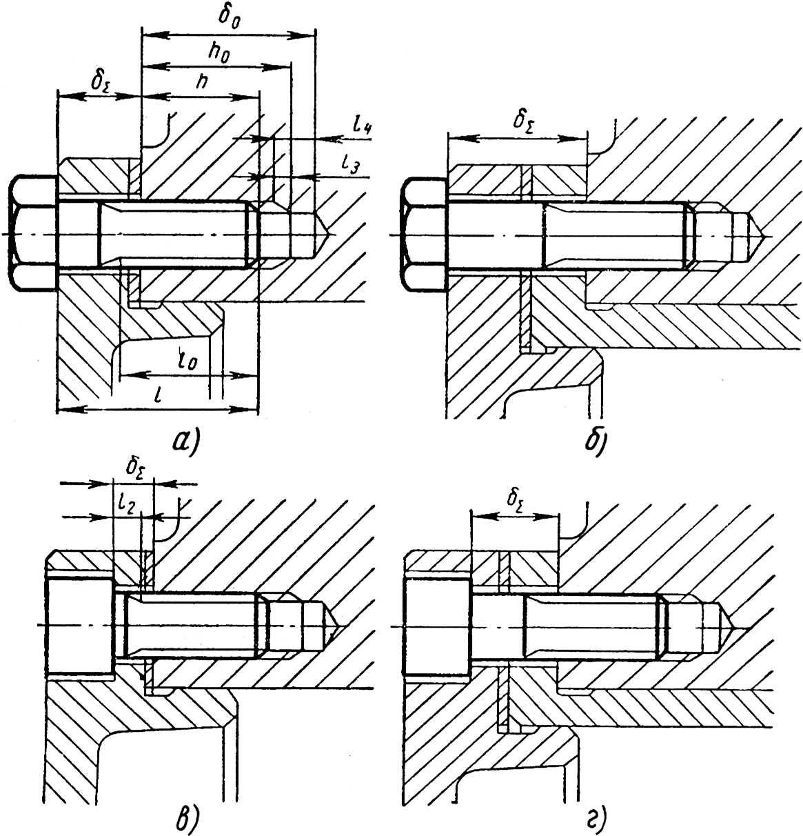где l – длина стержня болта; δΣ – суммарная толщина скрепляемых деталей; S – шаг резьбы.