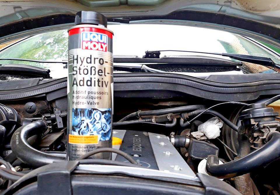 - Применение промывочных составов. Есть два популярных варианта: Liqui Moly Hydro‐Stossel‐Additiv и BG103. Нужно делать все строго по инструкции. Иначе эффекта не будет.