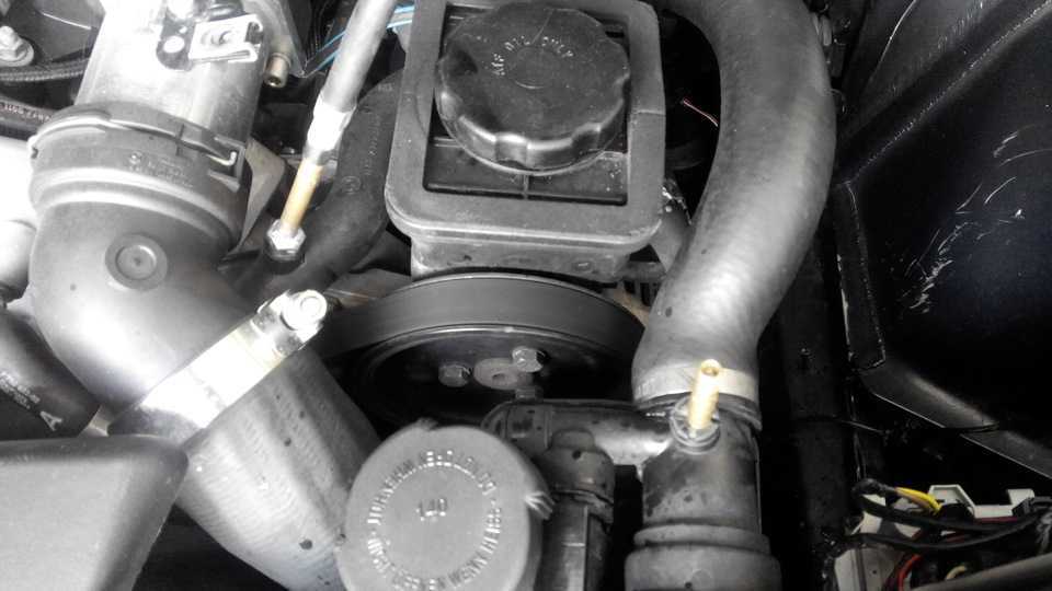 — Остановить двигатель, температура охлаждающей жидкости ЈА— Снять крышку расширительного бачка (РБ) .— Вывернуть винты для удаления воздуха:на термостате радиатора EGR;на трубке возврата охлаждающей жидкости.— Включить зажигание.— Установить регулятор отопления на максимальную температуру, а вентилятор на минимальную скорость (при этом полностью открываются клапаны отопления, и работает дополнительный насос).— Медленно! залить охлаждающую жидкость. Очень — как буд то вы эстонец после ночной смены— Ввернуть винты для удаления воздуха после того, как пойдет жидкость ИМЕННО без пузырьков или после заполнения до максимального уровня. Даже после заполнения у меня шли долго пузырики — это и была моя ошибка когда я завернул винт после наполyения в прошлый раз— Долить жидкость в РБ до отметки MAX для не прогретого состояния.— Запустить пуск двигателя и дать поработать 5 минут на холостом ходу (при необходимости долить охлаждающую жидкость до максимальной отметки)— Закрыть крышку РБ . Несколькими нажатиями на педаль акселератора увеличить обороты до 2500 об/мин— Открыть крышку РБ, дать двигателю поработать еще 5 минут на холостом ходу (до выхода из вентиляционного трубопровода в РБ охлаждающей жидкости без пузырьков)— Долить жидкость до максимальной отметки при не прогретом состоянии.— Долить в РБ дополнительно 250 мл.— Закрыть крышку расширительного бачка.