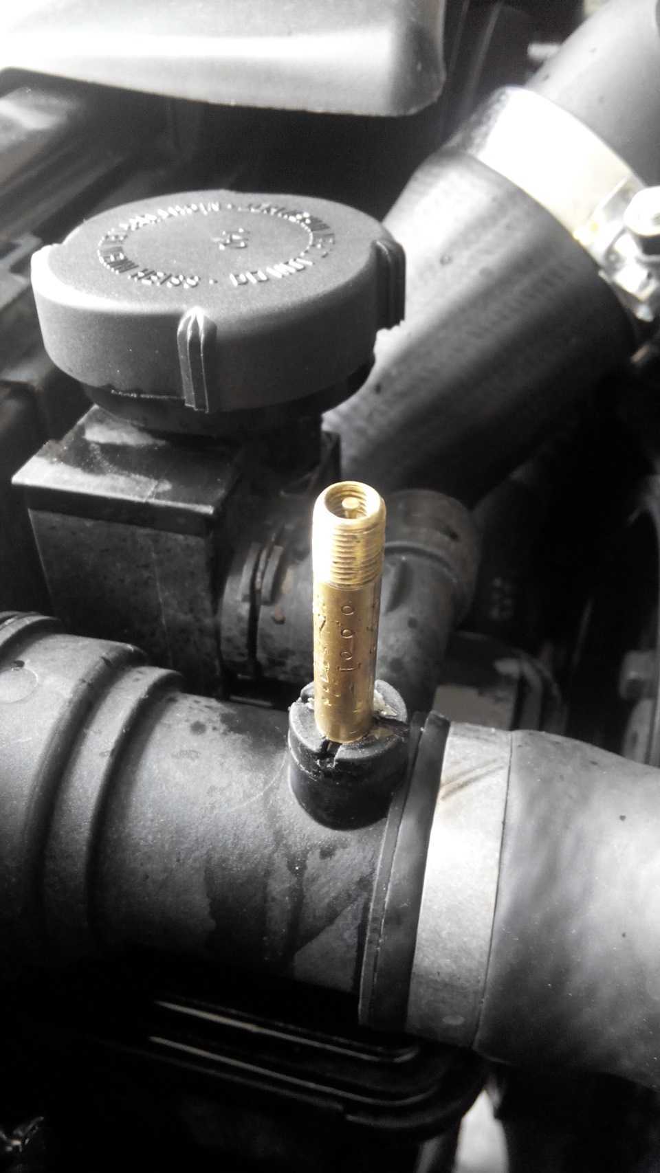 Проверить работу перепускного клапана достаточно просто. Для этого нужно отсоединить любой небольшой патрубок системы охлаждения на двигателе, например, подогрев заслонки или коллектора. Далее необходимо с помощью компрессора с манометром (чтобы знать точное подаваемое давление) необходимо подавать воздух в систему. Значение давления, при котором срабатывает клапан, будет легко определить по шипению и бульканию, исходящему из элементов системы охлаждения