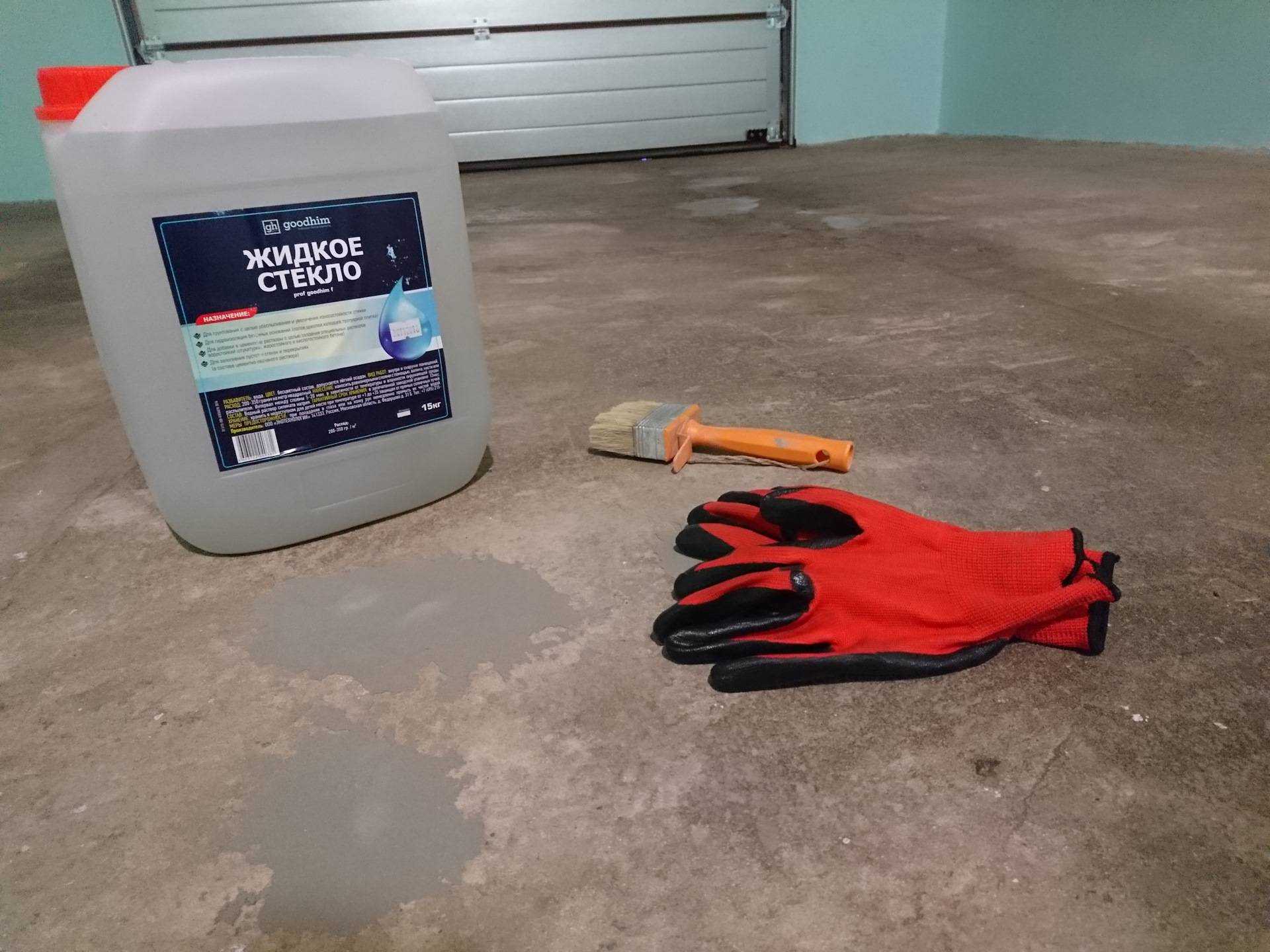 Принцип работы данного метода таков: раствор жидкого стекла впитывается в бетон через имеющиеся в нем поры и образует в его толще нерастворимые соединения. После пропитки бетонная поверхность становится прочнее, меньше пылит и хуже впитывает влагу, ее сложнее поцарапать. Подлежащий пропитыванию бетон должен быть хорошо просохшим и полностью очищенным от пыли.