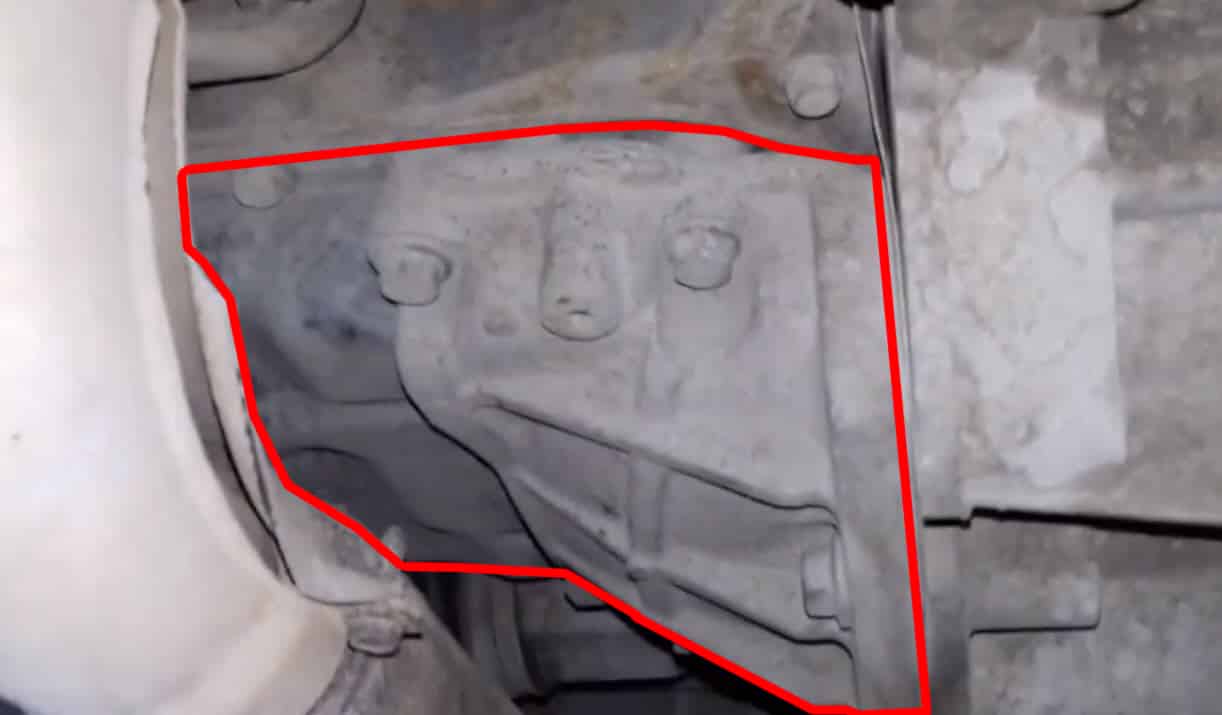 Сначала придется открутить кожух коробки передач, которая мешает снять необходимую деталь — нужно снять сам кожух и пластинку под ним.