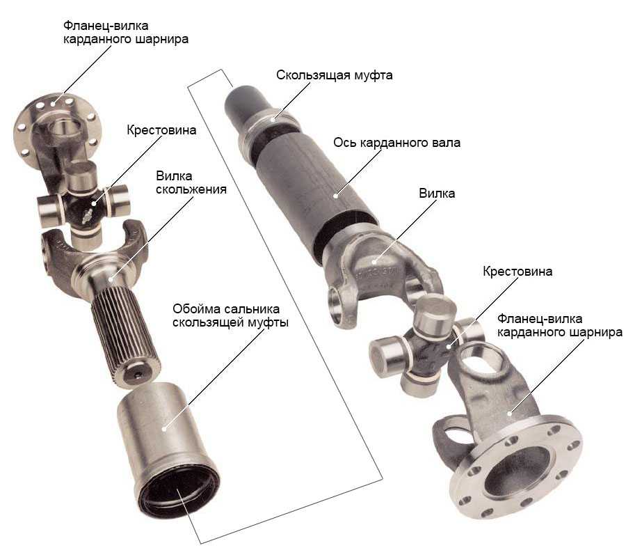 Карданный шарнир является самой важной частью вала. В целом, устройство карданной передачи включает в себя: