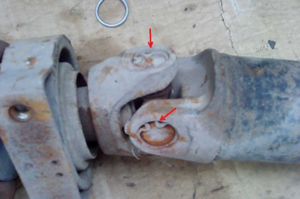 Из проушин выбиваются чашки с подшипниками. Обычно одна из чашек после снятия стопорных колец вылетает сама. Остальные три чашки выбиваются через проставку.