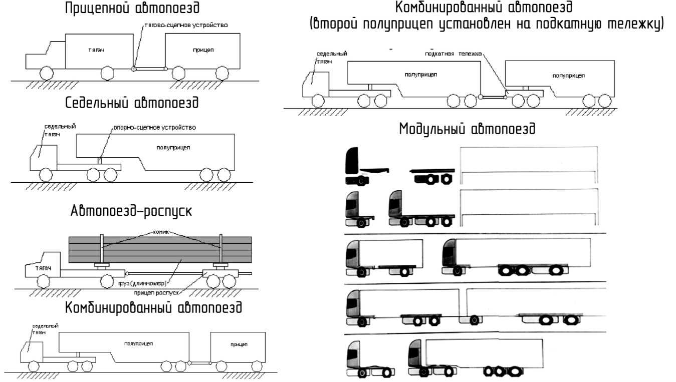 Автопоезда отличаются друг от друга по различным параметрам, включая их внешние габариты. Исходя из этого, специалистами создана классификация автопоездов, ознакомиться с которой совсем вам не мешает. Различают такие их типы: