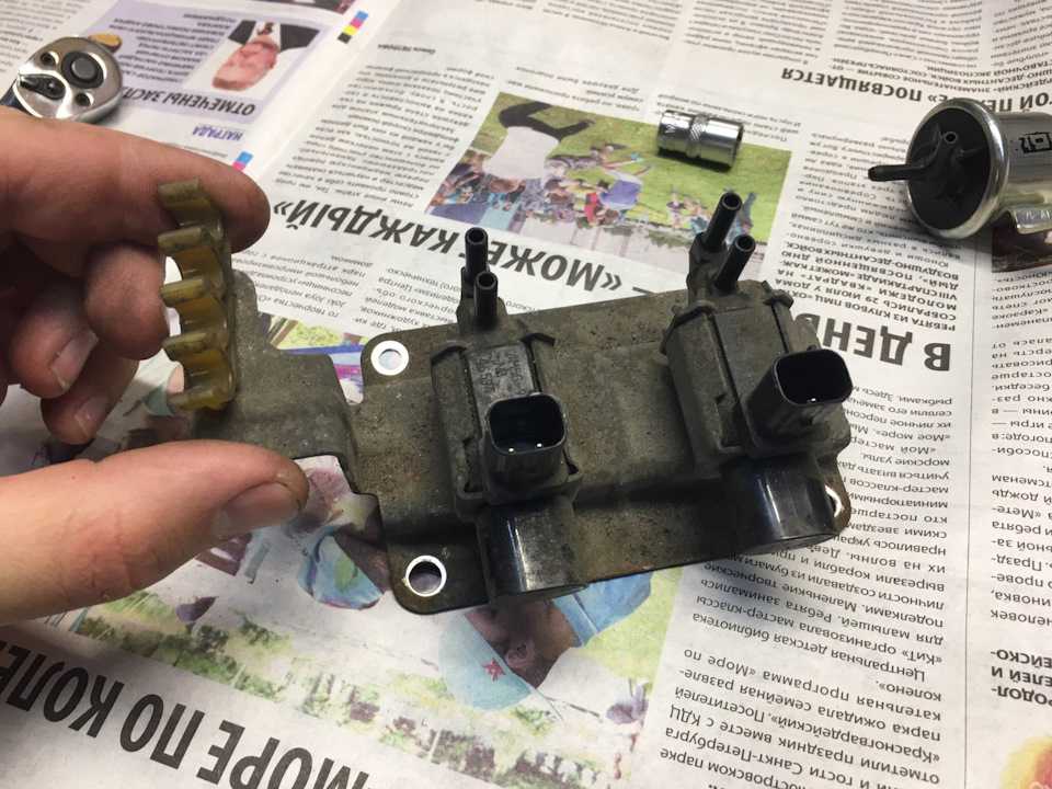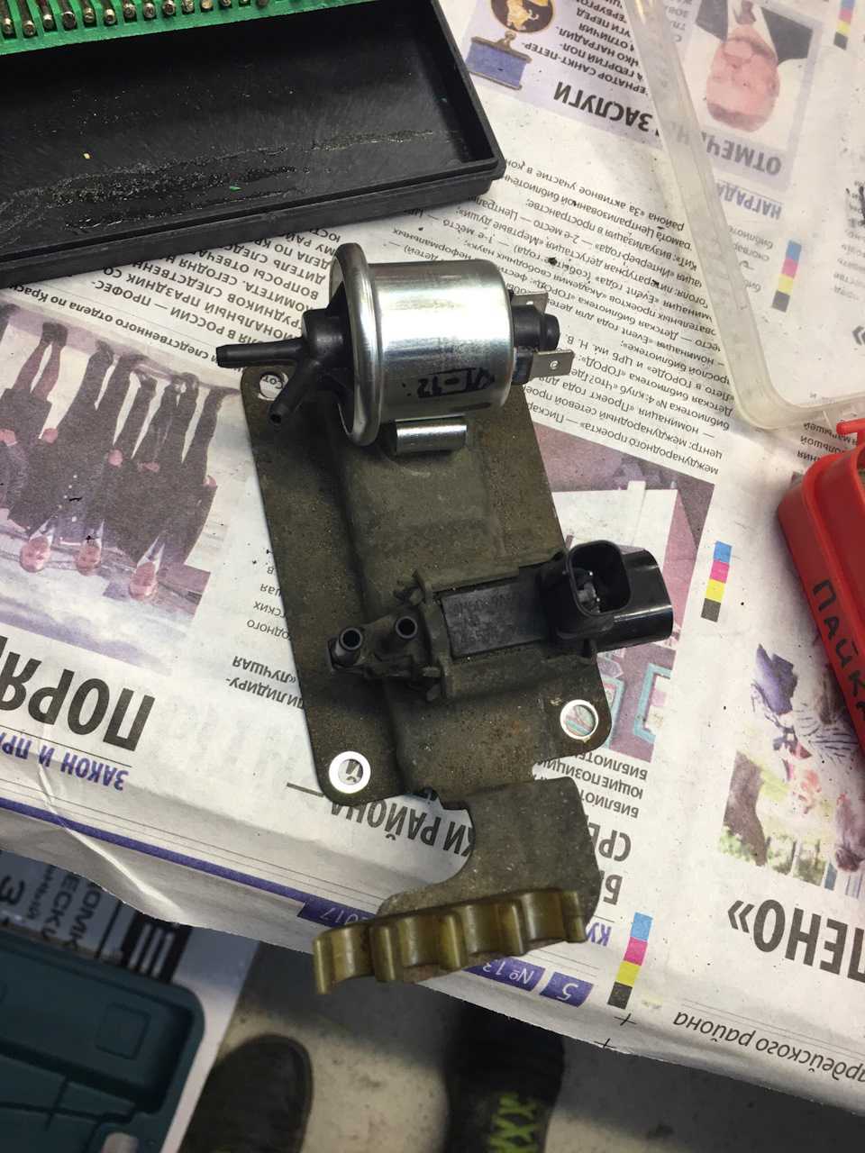 Клапан в сборе р Пока двиг остывает решил менять эти клапана. Ничего сложного нет, открутил старый, отключил трубки и 2 фишки от клапанов. Ну и новый поставить на место. Полный размер Старый ещё на месте. Полный размер Новый и старый Ну и тестером проверил какой умер. Полный размер Ближе к лобовому мертвый.