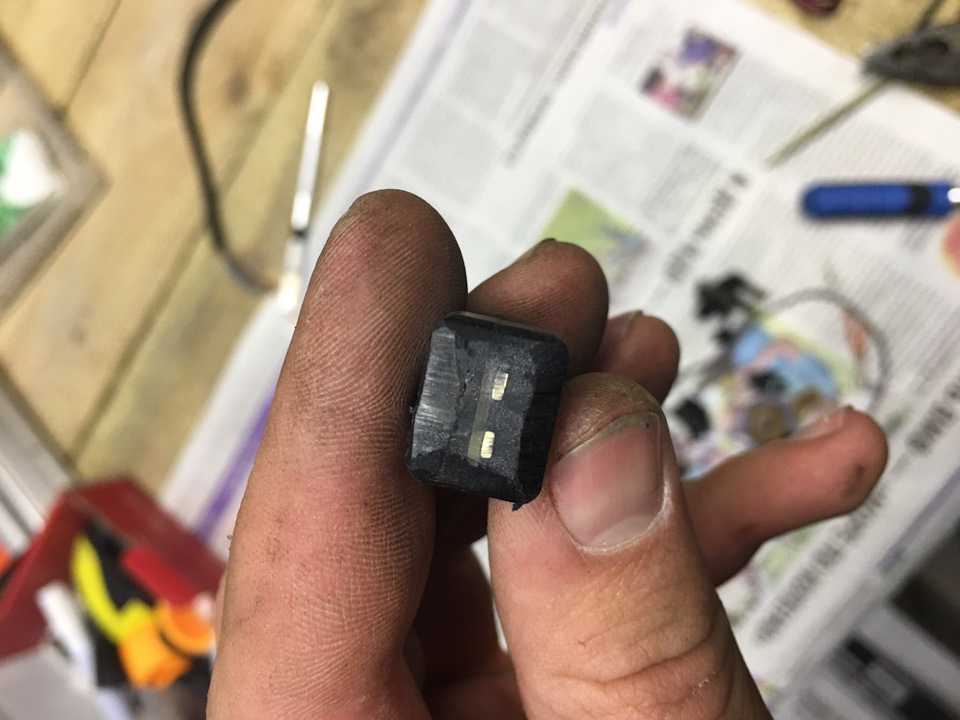 Теперь его нужно разобрать для того, чтобы выломать фишку (ну, или же можно отрезать провода у машины и припаять обычные папа-мама, но это же не наш метод, Сеня!). Обычными пассатижами сжимаем усики