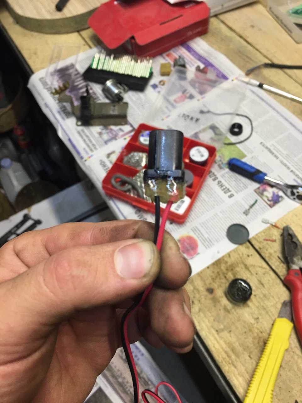 Немного обтачиваем её на наждаке так, чтобы оголились контакты.