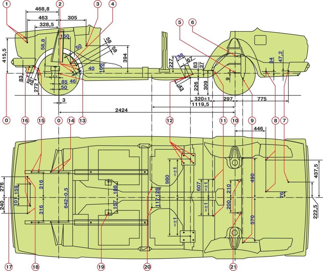Собираюсь восстановить кузов по уму, поэтому собираю и изучаю информацию. Может кому-то пригодится…Основные размеры проверки точек крепления агрегатов