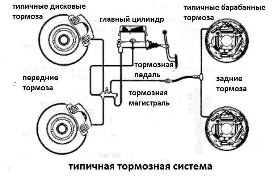 Чтобы разобраться в работе главной схемы, нужно знать, из чего состоит тормозная система: