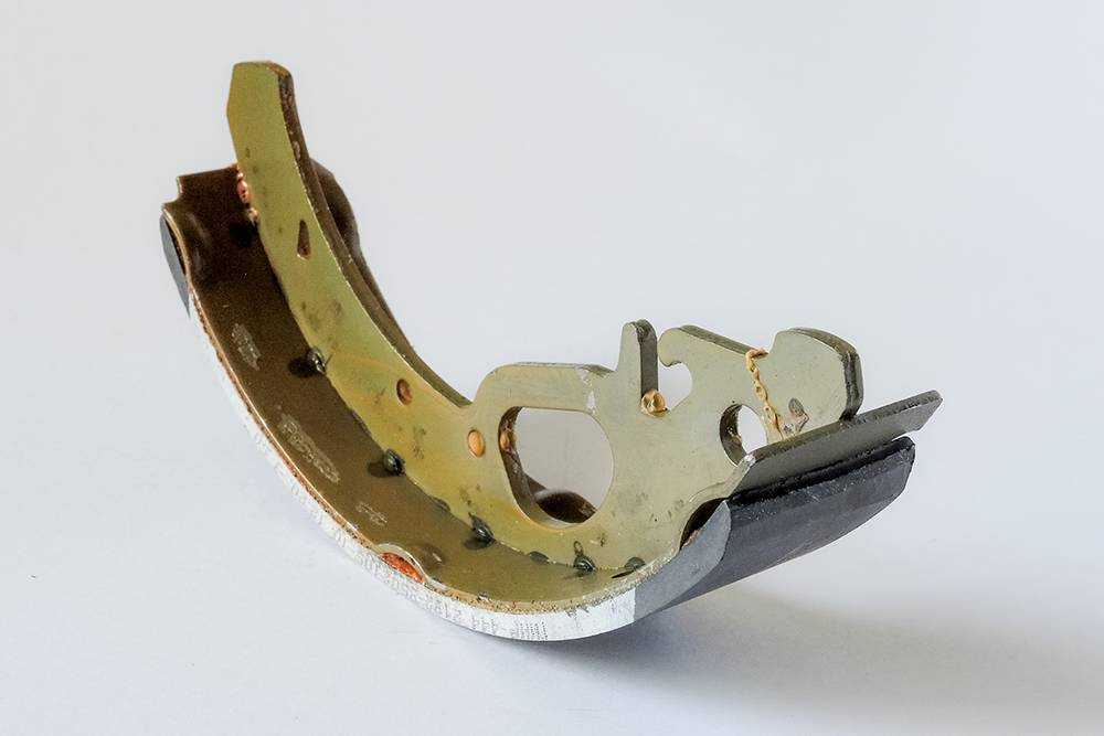 Колодка для барабанного тормозного механизма. Также металлический корпус и фрикционная накладка. Она контактирует с внутренней поверхностью тормозного барабана в процессе торможения