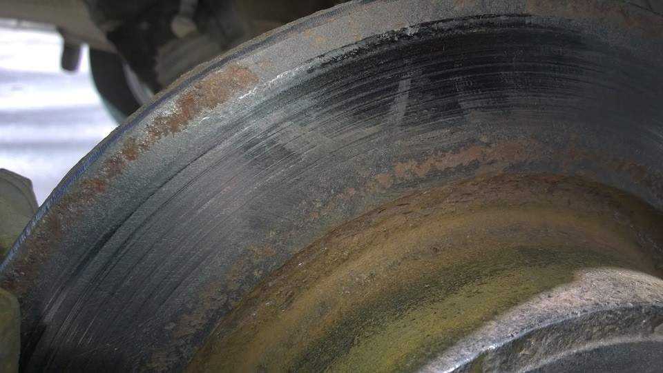 Естественный износ ТД по сроку равен износу 2–4 комплектов колодок. На поверхности диска появляются непараллельные борозды, ямки, выступы. На наружной стороне — отчетливая кромка.