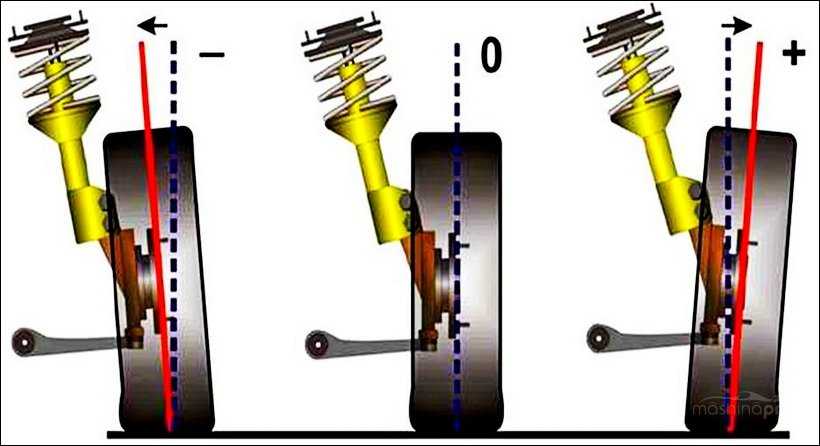 | Поперечный угол наклона оси поворота (KPI) | Передняя | Нет | Стабилизация автомобиля при движении |