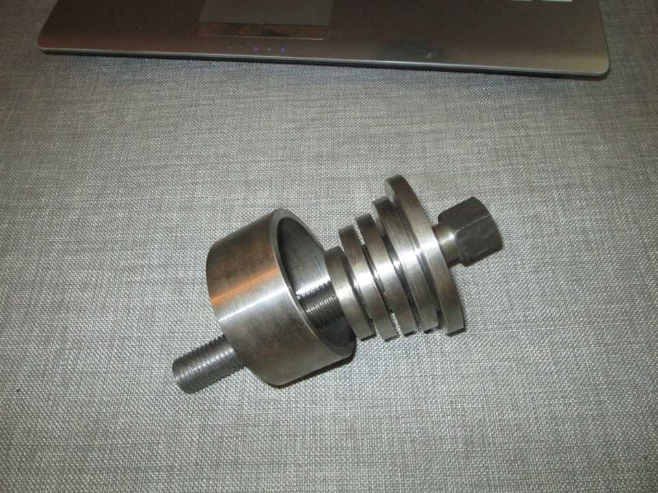 - Теперь необходимо спрессовать ступицу с вала привода. Ниже показан метод с применением съемного устройства с тремя лапками.