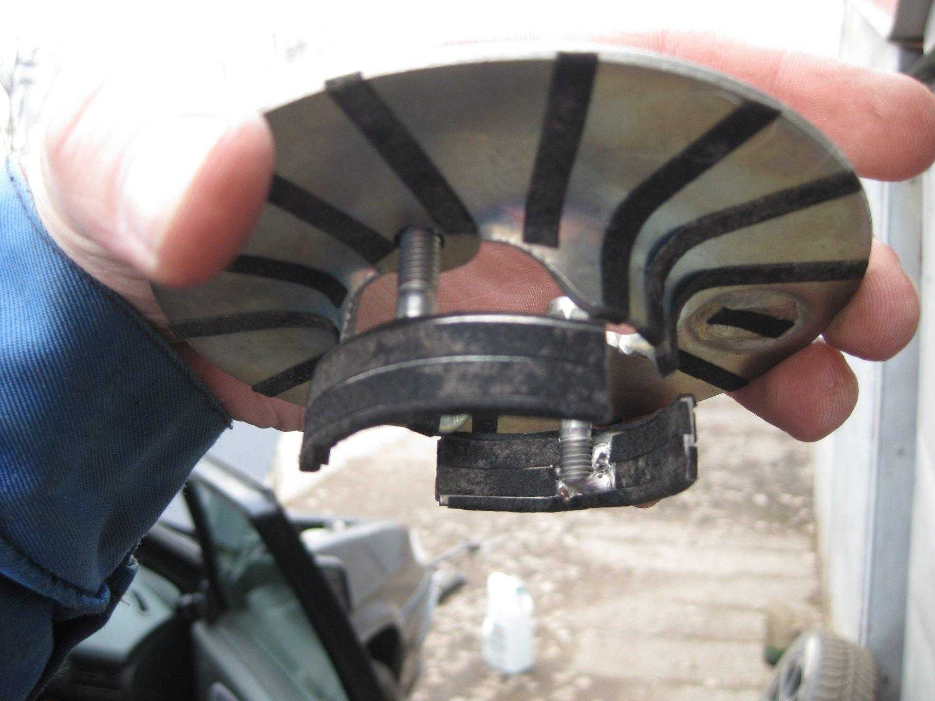 Верхняя часть распорки ложиться на стакан и прижимается снизу двумя полумесяцами, приваренными к болтам. Судя по отзывам, крепление довольно хлипкое и не вызывает доверия. Но из-за того, что низ верхней части сделан конусом, распорка должна прилегать плотно к стакану, обеспечивая тем самым более-менее устойчивое расположение. В сети можно найти отзывы людей, положительно отзывающихся об эффекте после установки такого рода изделия.