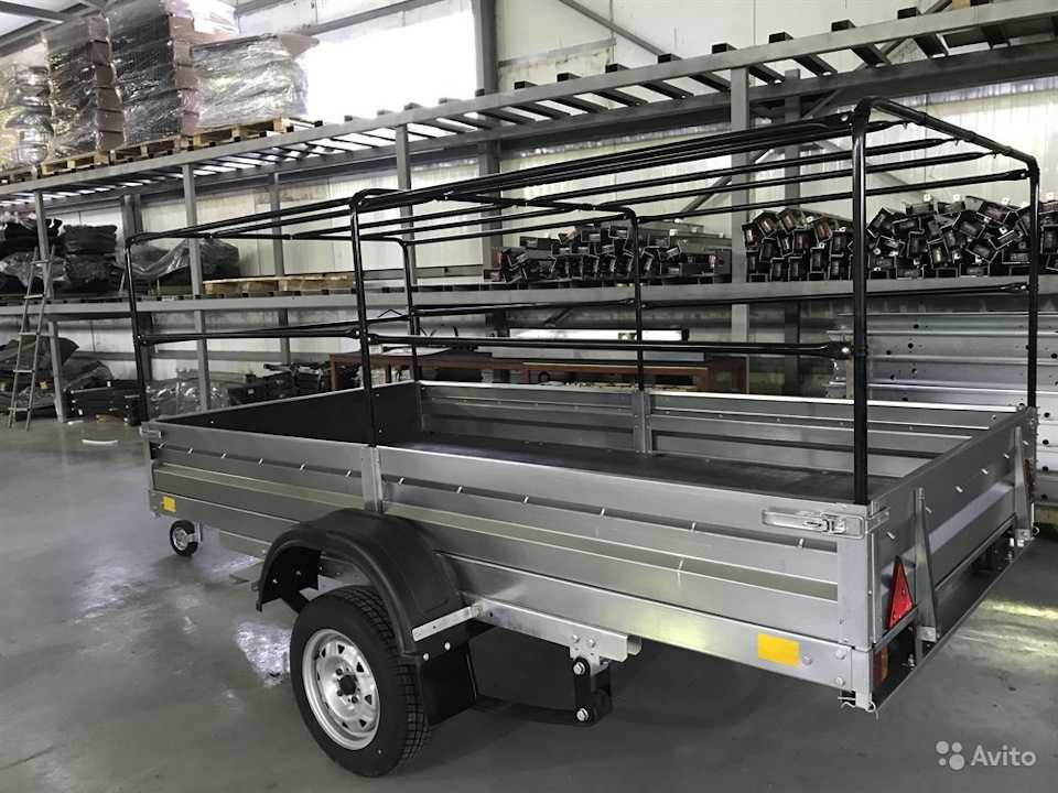 - Бортовые прицепы общего назначения. Самый распространенный вариант конструкции. Выпускаются в различных размерах, по разным ценам и в соответствующих комплектациях. Цены составляют от 30 до почти 100 тысяч рублей;