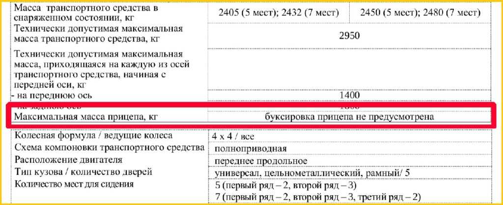 Также есть специальная табличка с допустимой массой автомобиля. В первой строке допустимая масса самого автомобиля, во второй строке масса с прицепом. Если вторая строка пустая или с прочерками, то буксировка прицепа таким авто, не предусмотрена.