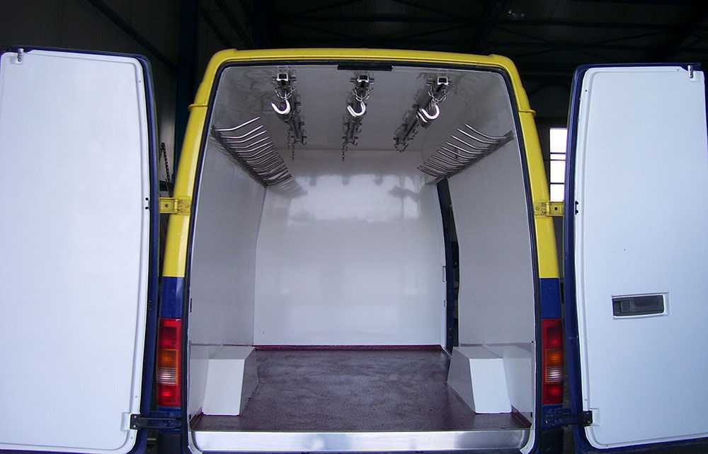 Для предотвращения перемещению груза внутри фургона и для удобного рассортирования его, внутри фургона могут устанавливать съемные сетчатые перегородки.