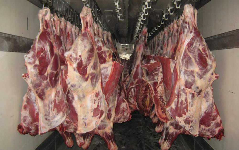 - говядина транспортируется, будучи разделанной на четвертины цельной туши;