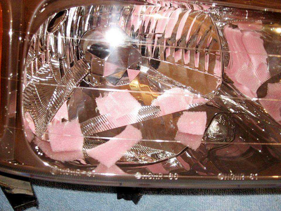 - Затем на протяжении нескольких минут попереворачивать фару. Не следует при этом ее сильно трясти, поскольку это может навредить хромированному напылению отражателя. В процессе аккуратного переворачивания поролоновые кубики протрут внутренние стенки детали.