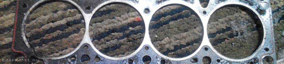 Отдельно стоит отметить случай, когда прокладка прогорает между двумя соседними камерами сгорания. Явных, визуальных признаков такого прогара нет.